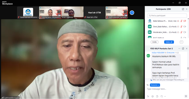 Kamis, 6 Februari 2025 – Kelompok Kepakaran dan Layanan Profesional (KKLP) Pembinaan dan Bahasa Hukum, Balai Bahasa Provinsi Sulawesi Selatan, melaksanakan kegiatan Forum Diskusi Daring (FDD) Seri 2 dengan tema Metode dan Teknik Analisis Kebahasaan untuk Tujuan Forensik dan Penegakan Hukum. Narasumber yang dihadirkan adalah Prof. Dr. Mahsun, M.S., seorang pakar Genolinguistik Linguistik Antropologi, Antropologi Forensik, guru besar Universitas Mataram, dan Kepala Badan Bahasa periode 2012–2015.