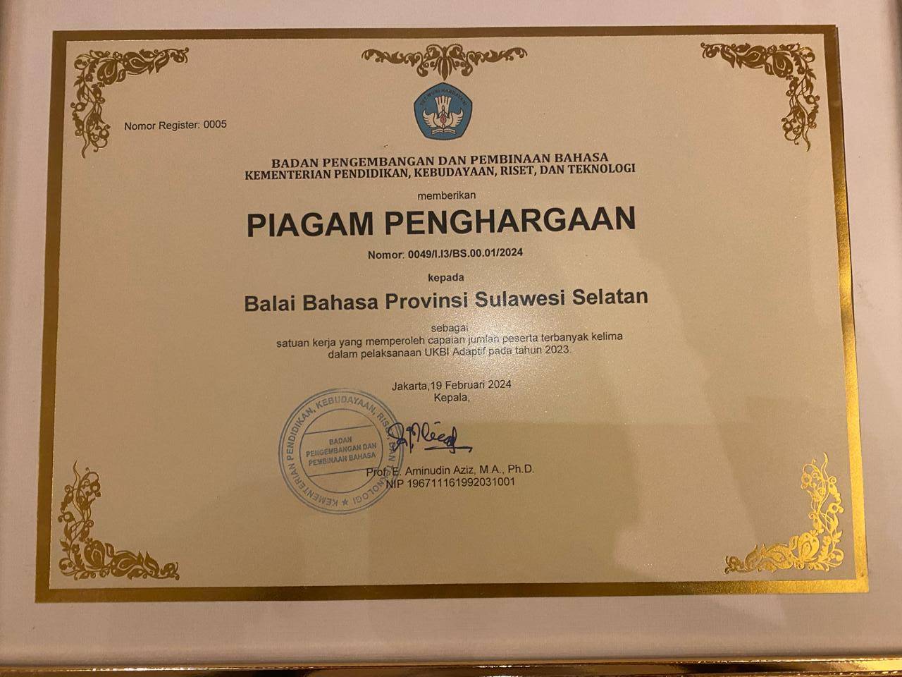 Terima kasih atas kerja samanya selama tahun 2023. Berkat Sahabat Bahasa, Balai Bahasa Provinsi Sulawesi Selatan mendapat empat penghargaan yaitu: