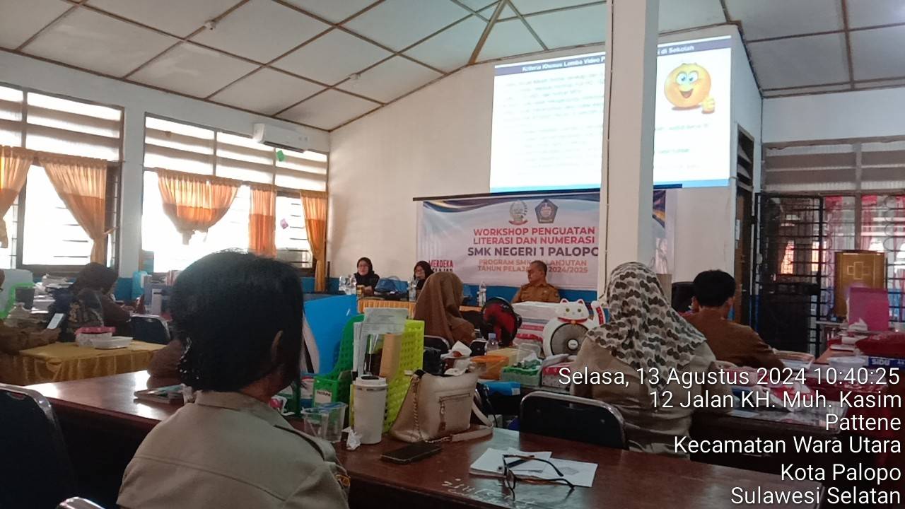 Kegiatan Lokakarya (Workshop) Penguatan Literasi dan Numerasi dibuka oleh Kepala UPT SMK Negeri I Palopo (Ridwan, S.T., M.Si.) pada tanggal 13 Agustus 2024. Kegiatan dihadiri oleh seluruh guru SMKN I Palopo. Ketua Tim Kelompok Kepakaran dan Layanan Profesional (KKLP) Literasi BBP Sulsel, Asmabuasappe, S.S., M.Hum. menjadi narasumber dalam kegiatan tersebut.