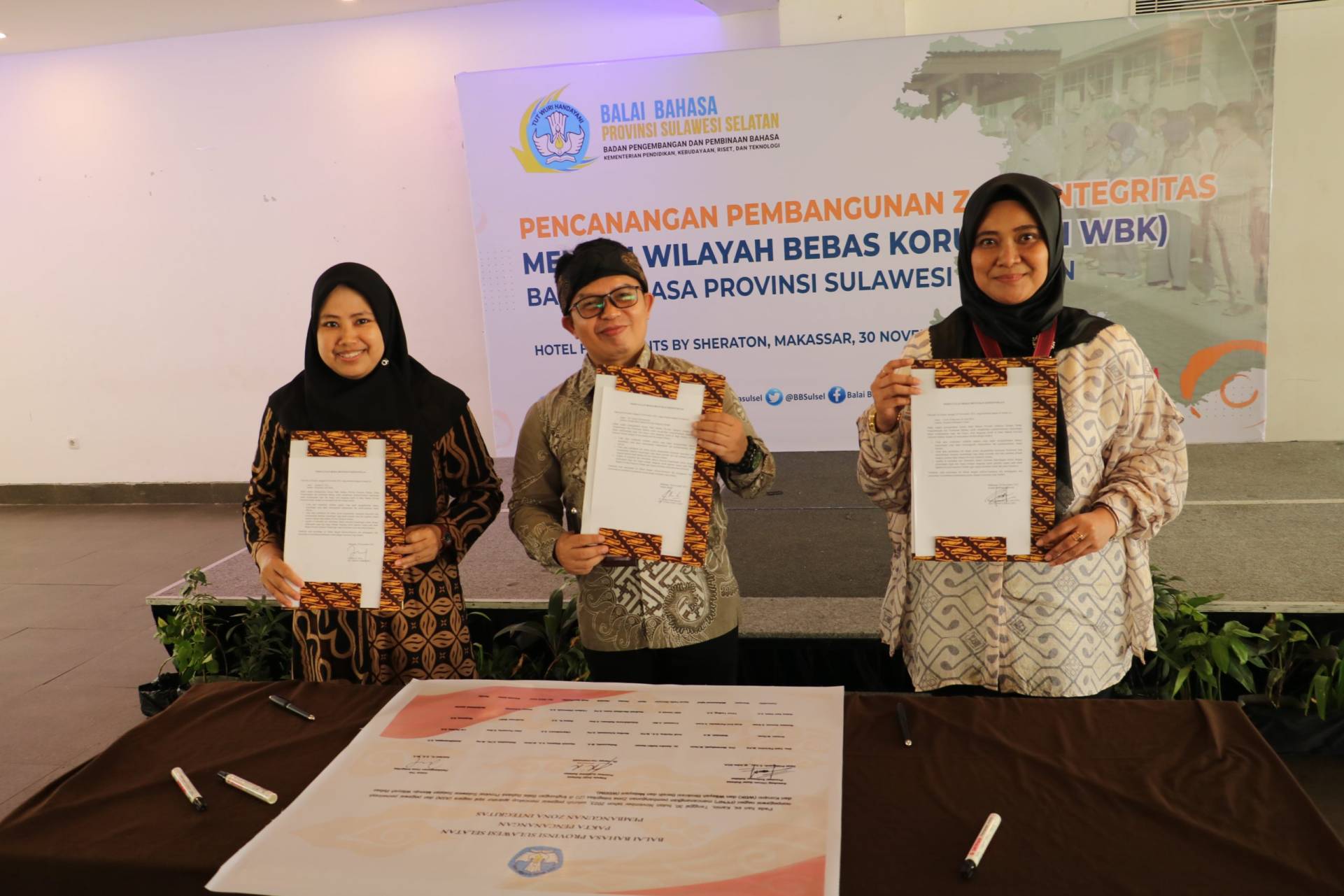 Makassar – Kamis, 30 November 2023 Balai Bahasa Provinsi Sulawesi Selatan mengadakan kegiatan Pencanangan Pembangunan Zona Integritas Wilayah Bebas Korupsi (ZI WBK) di Hotel Fourpoints by Sheraton Makassar.