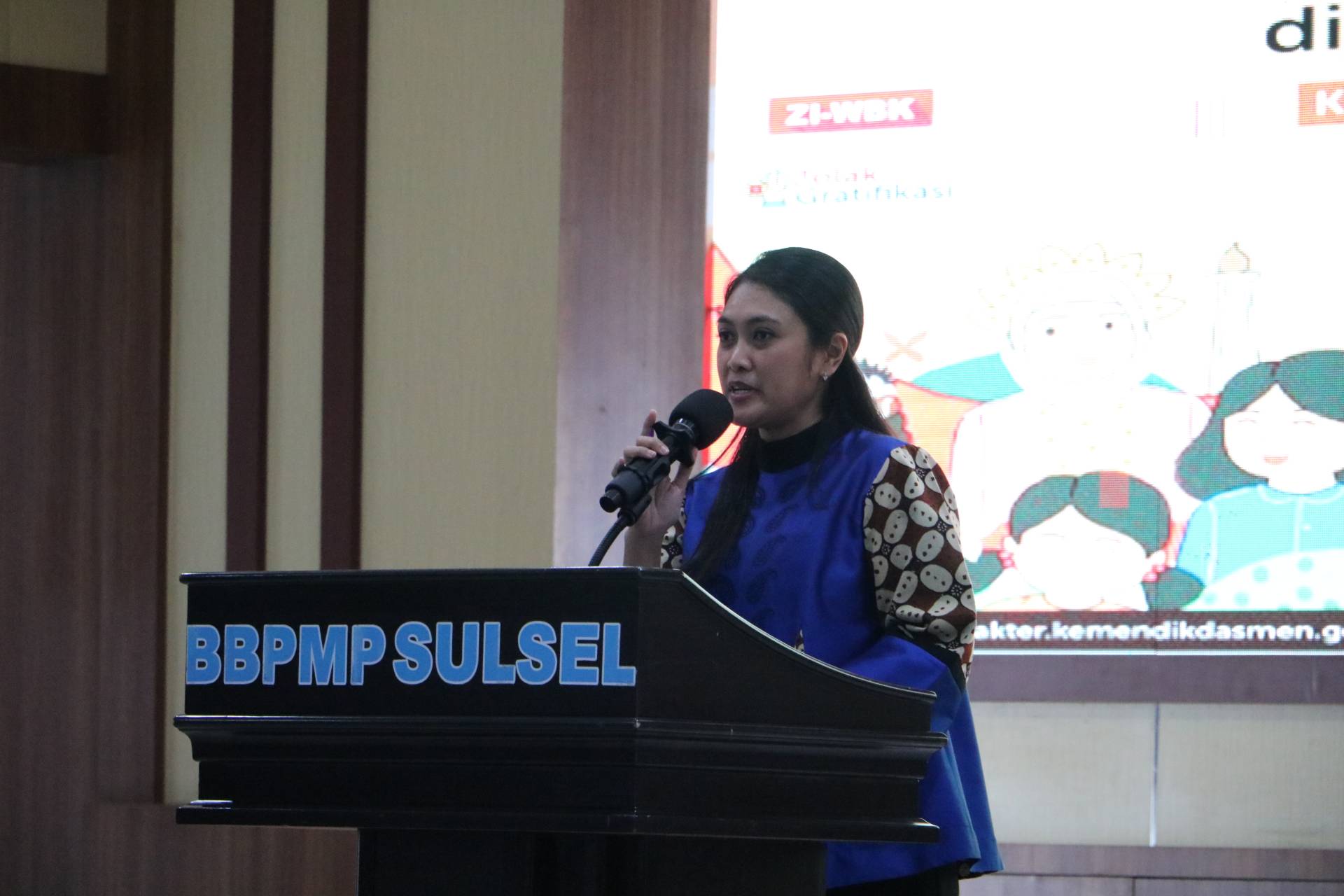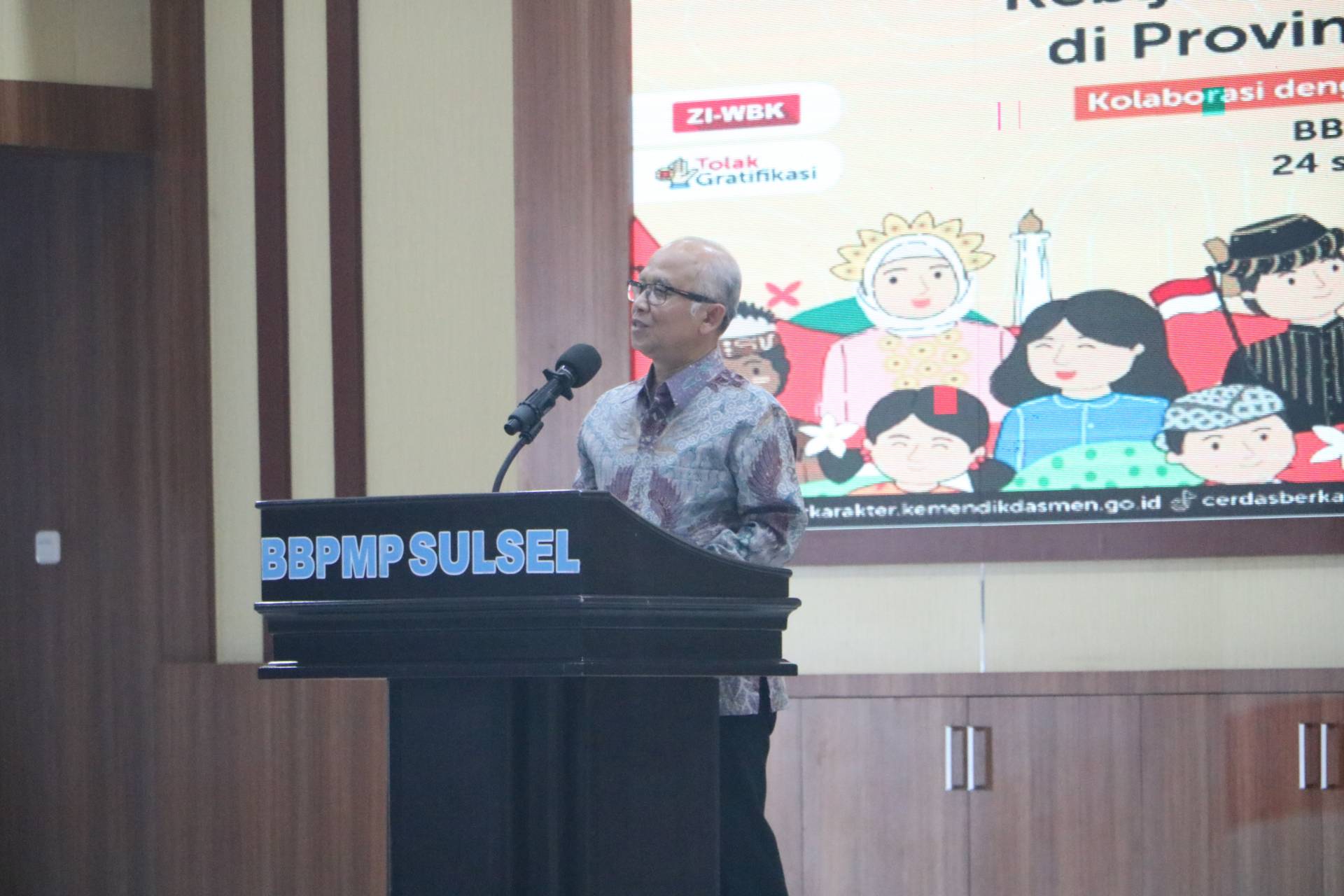 Sebagai penutup rangkaian kunjungan, Wamen membuka acara Fasilitasi dan Advokasi Kebijakan Penguatan Karakter yang diselenggarakan oleh Pusat Penguatan Karakter (Puspeka) Kemendikbudristek di Aula BBPMP Sulsel.